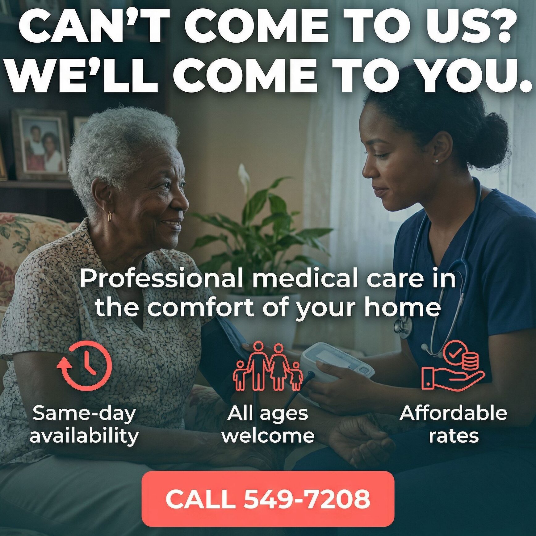 We can come to you and provide medical consultations and services